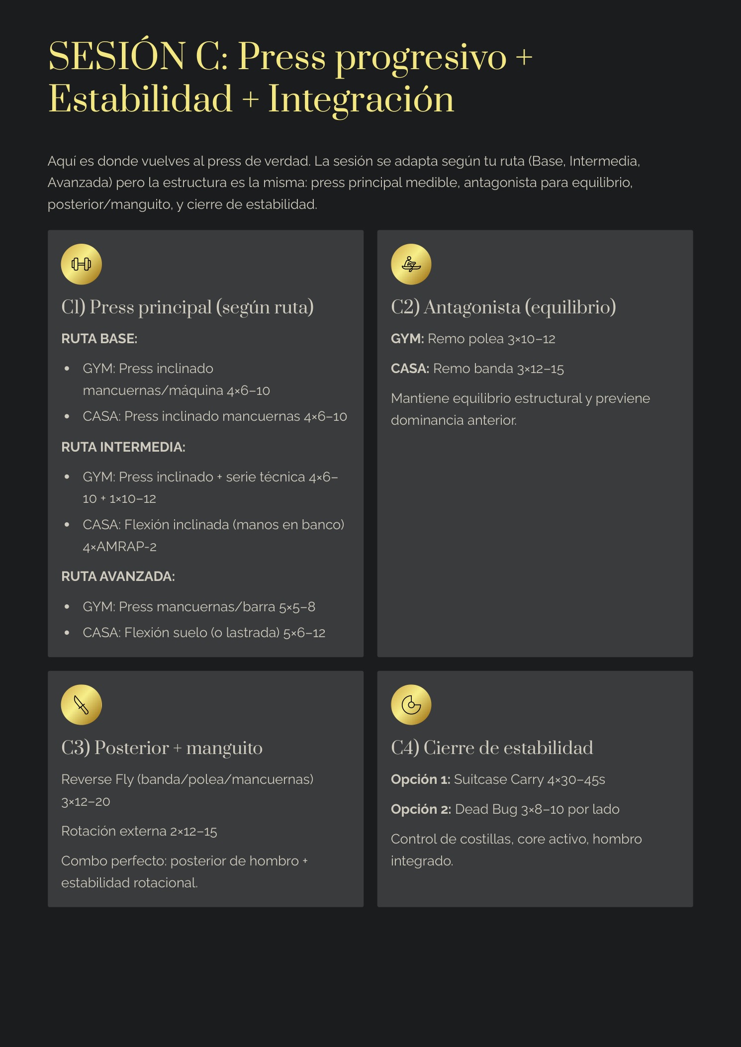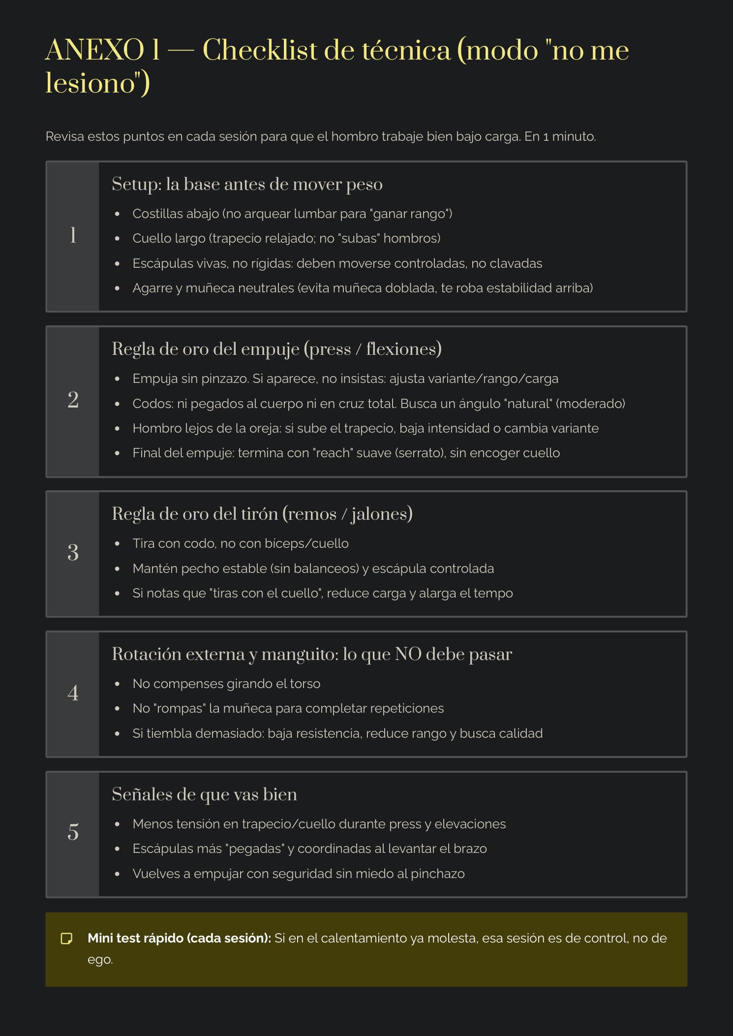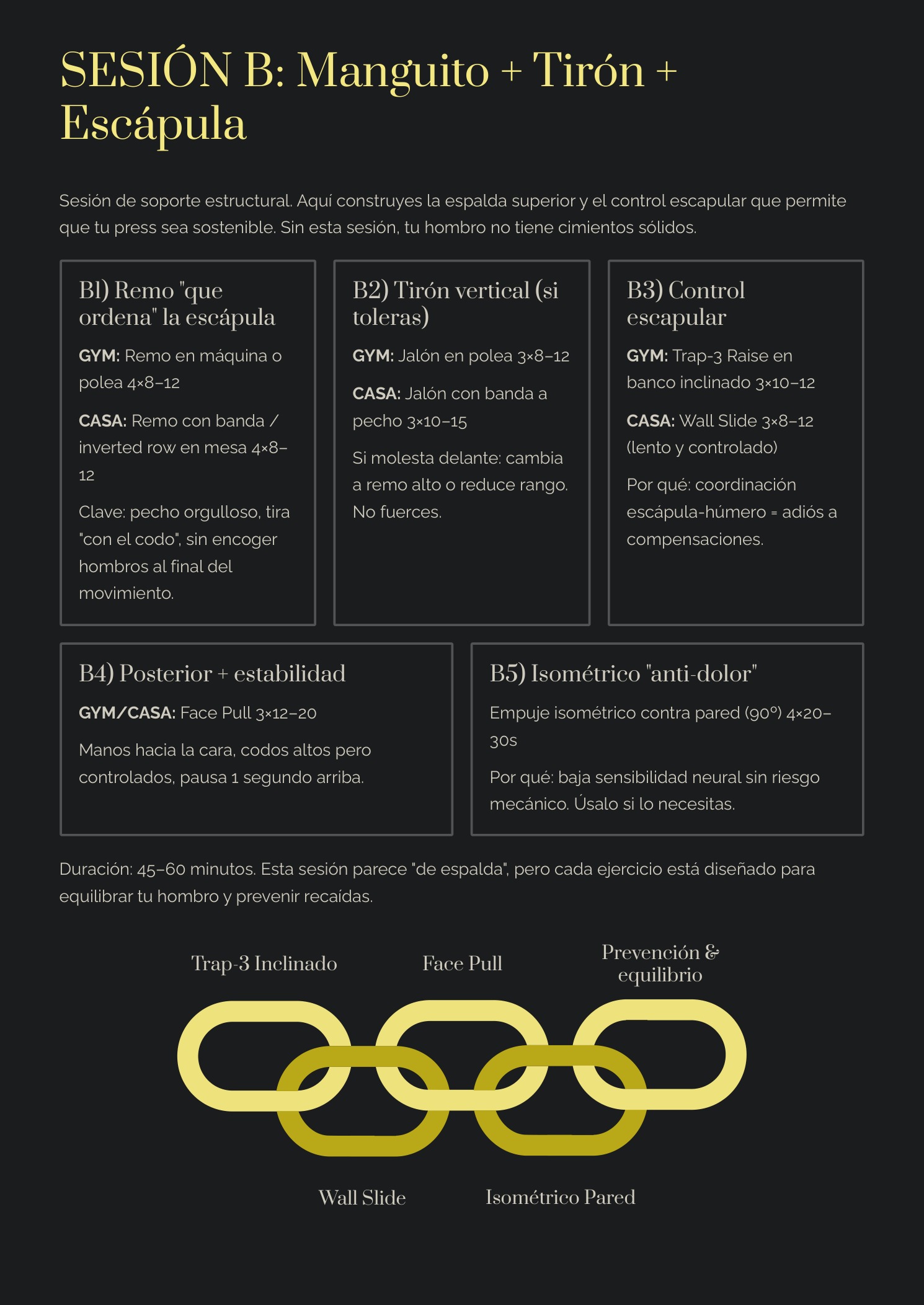 ✅ Biblioteca PRO de ejercicios: alternativas por objetivo (manguito, escápula, serrato, empuje, estabilidad).