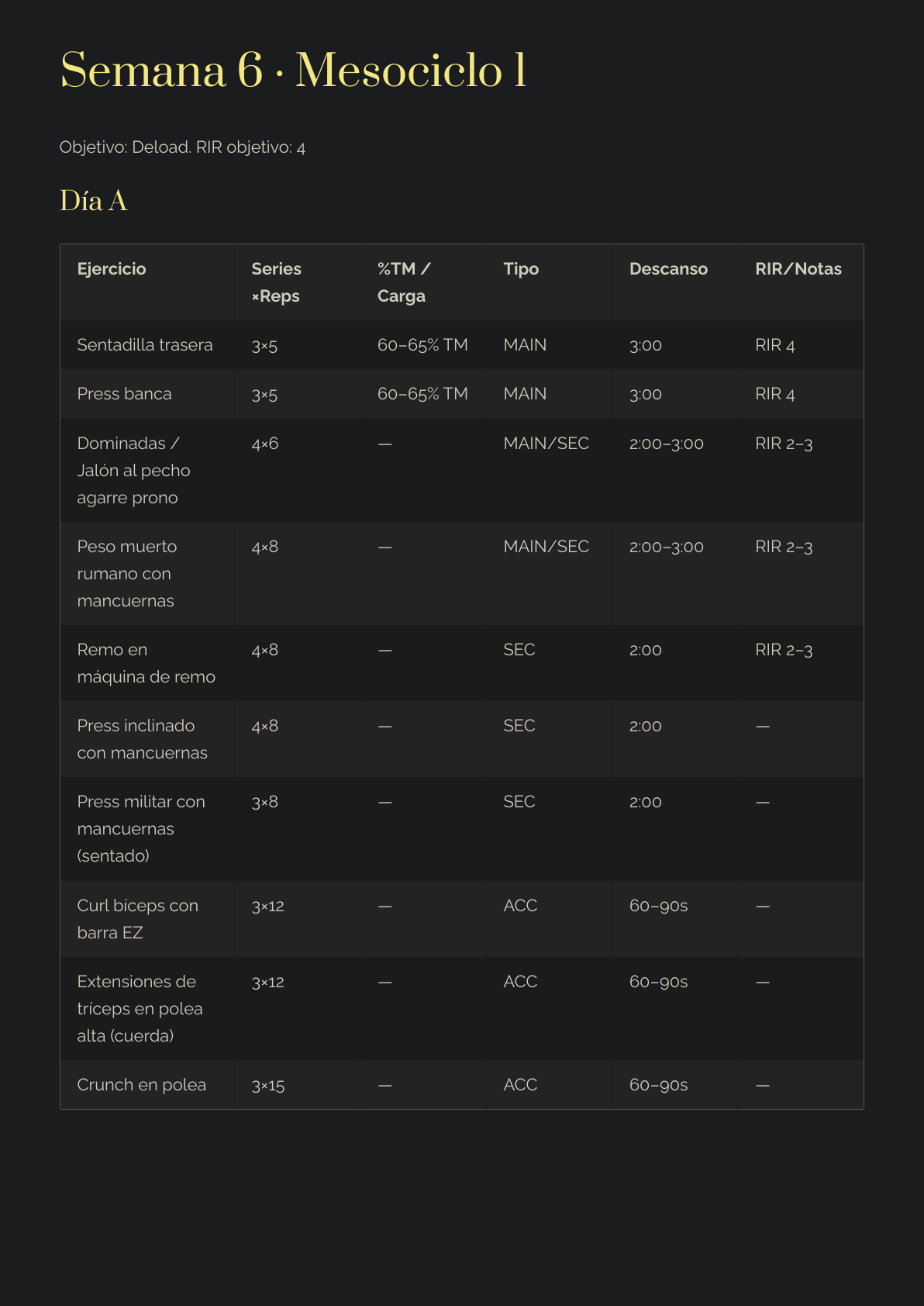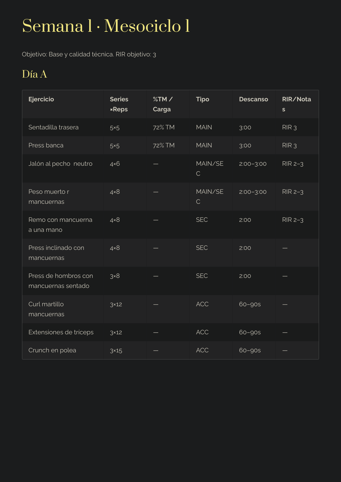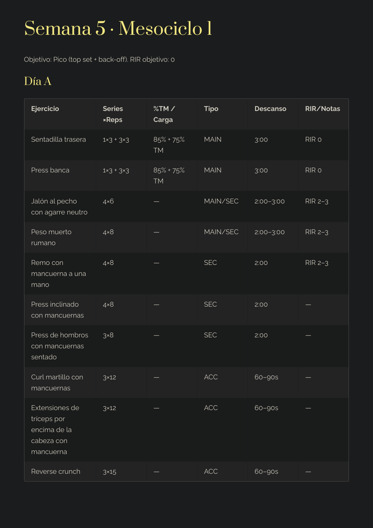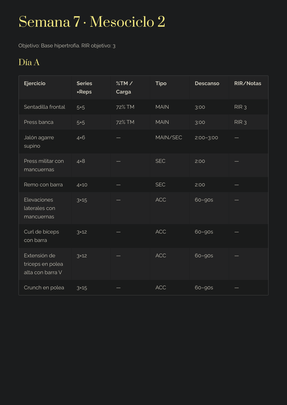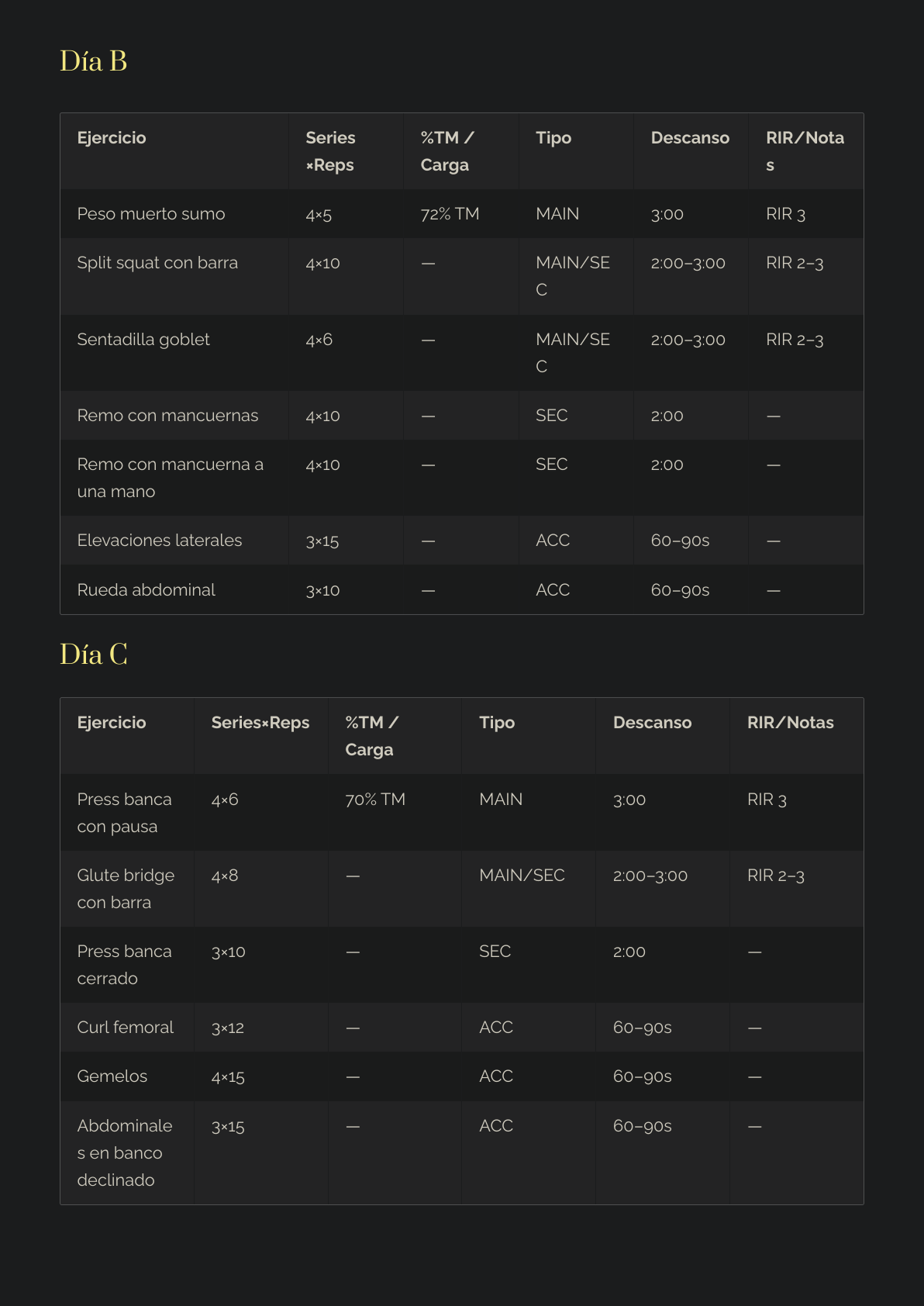Prioridad de ejercicios MAIN > SEC > ACC (qué importa de verdad).